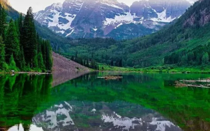 In the Rocky Mountains, Maroon Bell is the most beautiful place in the world. It is located in the White River National Forest. Here, you can see two high peaks reflected in the still waters of Maroon Lake.